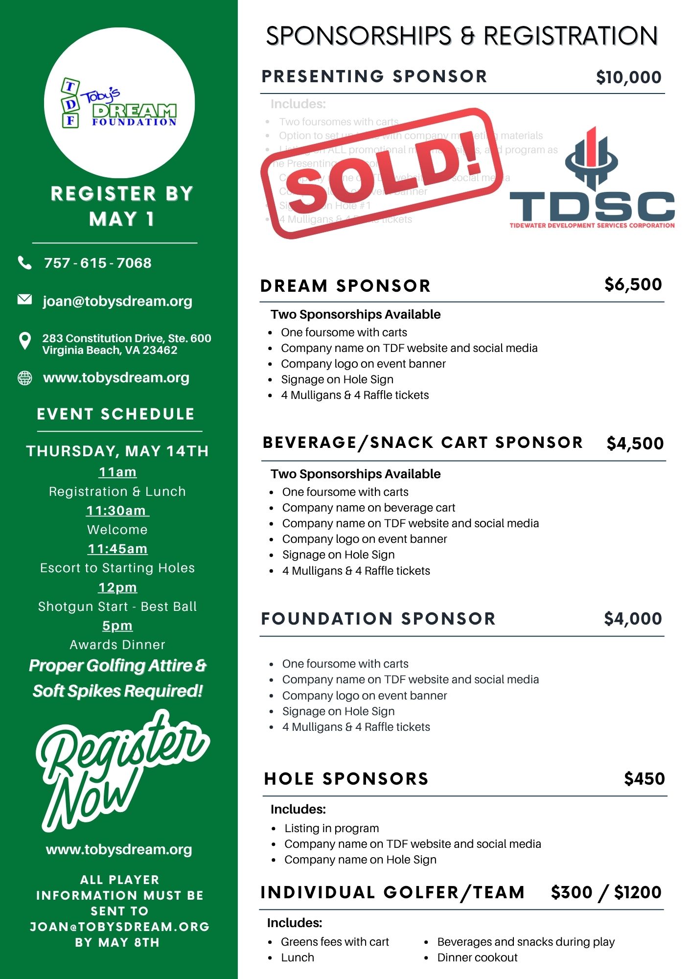 2026 Golf Classic – Thursday, May 14 – Click here to register